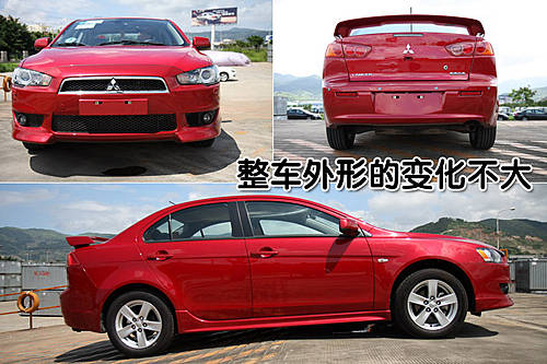 新款LANCER EX的外形有着突破性的改变,采用了接近于LANCER EVOLUTION的鲨鱼鼻式的前脸。大嘴造型是时下流行趋势的先锋,流畅饱满的线条无不彰显着其诱人的魅力,全车轮廓分明,非常有肌肉感,高耸的车尾斜斜地延续到前半部的扁平车头,很有跑车的气势,尤其是有如鹰眼的车头大灯,显得炯炯有神。