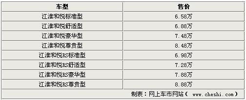 作为江淮今年下半年最重要的新车,和悦系列产品于10月18日正式上市。该系列车型分为和悦轿车以及和悦RS,分别搭载1.5L和1.8L发动机,售价为6.58至8.88万元。据了解,江淮和悦系列车型虽然是同时上市,但由于排产等原因,首批推出市场的将有可能是和悦RS,和悦轿车推出市场的时间会稍迟。