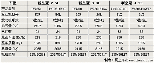 丰田新皇冠在原有2.5和3.0两种排量车型的基础上,又添加了4.3排量的车型。4.3排量的新皇冠采用了V型8缸发动机,该发动机运用了丰田独有的VVTi技术,在保证强劲动力输出的同时,又很好的控制了油耗。4.3排量的新皇冠最高时速可以达到250Km/h。