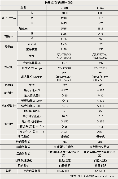 悦翔两厢是长安汽车针对A级两厢车市场推出的第一款车型,在动力上延续了1.5L的配备,采用16气门电子控制多点燃油喷射发动机,不仅动力高效,而且节能环保,最大动力输出72千瓦,峰值扭矩为137N•m,最高车速为170公里/小时,既能胜任城市路况,又能带来驾驶乐趣。在外观上承袭三厢现代、经典、动感的设计元素之外,更突出运动风格,多达十种的颜色选择,为那些追求个性,无拘无束的时尚人士提供了更完美的选择。