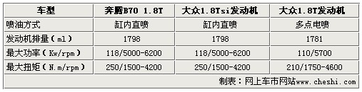 在奔腾B50车型上,一汽就采用了大众提供的1.6L引擎,而现在作为合作伙伴的大众更加的“仗义”,将自己最新的1.8T缸内真喷引擎给了一汽奔腾。奔腾B70 1.8T采用大众1.8TSI发动机,有效的提升了车辆的动力。最大功率可达118kw,在1500转-4200转时可以持续提供250Nm的扭矩输出。与大众早期生产的多点电喷1.8T发动机相比,1.8TSI发动机在各方面都占优势。