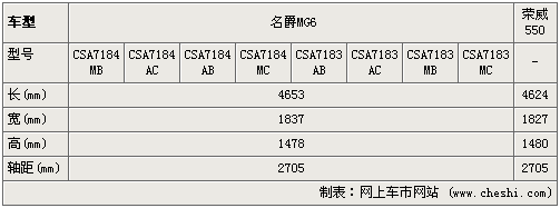 从参数上来看,名爵MG6与荣威550的轴距是一样的,毕竟出自一个平台都为2705mm,不过MG6虽为掀背车在车长方面却比550要长一些,也比550略宽10mm,但车高差一点点。据了解,名爵MG6将推出了8个型号的车型,预计将有1.8L和1.8T两个排量车型。