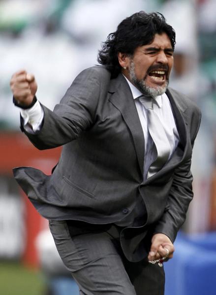 马拉多纳回来了,以一个新身份——球王主教练,带领梅西等一班天才,想要体验真正黄袍加身的快感。北京时间6月12日晚,阿根廷小胜非洲雄鹰,马拉多纳用快感在钻石王国肆虐了一把,熊抱木讷梅西,亲了又亲。