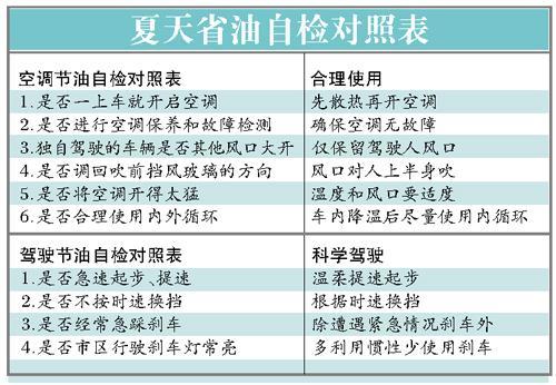 记者走访4S店发现,随着天气的炎热,越来越多的经济车主因为居高不下的油耗,怀疑汽车质量问题。记者调查发现,排除产品故障外,影响夏天汽车油耗最主要的因素就是空调的使用不当。此外,因天气造成心情浮躁导致的急加油和急刹车等,也白白导致了汽油的浪费。售后人员指出,在科学使用空调的情况下,百公里油耗增加1~2L,属于正常的范畴。下面,我们将跟随节油高手的步履,走进夏日节油的世界。