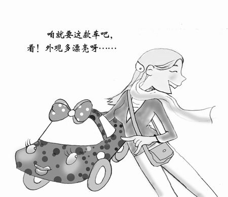 “大多数女性购车者购车仅凭着自己的第一印象,对车子外形要求往往特别挑剔,第一眼相不中的车型,无论性能如何好、别人如何推荐,一般都不再考虑,因此,一些外形特别引人注目的车型往往比较讨巧。”北京现代某4S店销售人员告诉记者,女性购车与男性明显的不同就是过于感性。“外观是女性买车时最关注的问题。女性顾客选车时,在一定价位内的车型中,往往先看对外形和颜色是否满意,然后再了解车的其他性能。”