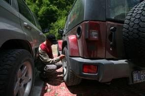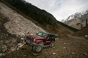 每逢雨季或夏季的来临,山顶上的冰川和积雪往往会缓慢消融,在道路中间形成多条溪流甚至是河塘。在通过未知的溪流或池塘时,不能盲目驾车入水,应先步行涉水以确定深度;驾车涉水时要保持稳定的速度匀速行驶,车辆应与水流保持一定角度,以使发动机能够正常运转;在上岸之前,加大动力,帮助轮胎抓住水边松软的地面。牧马人的涉水深度达到了近半米,大大优于同级车型。如果驾驶者采用正确的技术,牧马人足以担当一定程度的两栖任务。