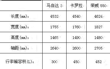要实用,宽敞的空间不可或缺。而从三辆车型的车身尺寸来看,荣威550最占优势。