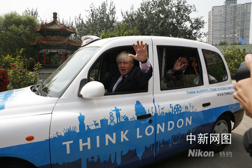 中新网8月26日电 8月25日,英国政府、英国伦敦投资局“走进伦敦之旅”在北京正式启动,伦敦市长Johnson和伦敦投资局首席执行官Michael Charlton出席活动启动仪式。活动现场,英国方面将一辆由中英合作生产的TX4改造成了“移动大使”,这辆蓝白相间,标有“伦探寻敦”字样的经典出租车成为整个巡游活动的“明星”,刚刚参加完北京奥运会闭幕式的伦敦市长Johnson亲驾TX4为2012年伦敦奥运会做宣传。