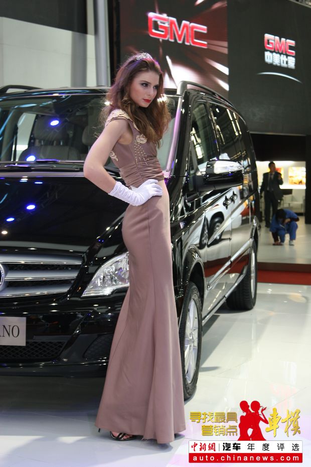 上海车展美女车模:奔驰展台车模——中新网汽车频道