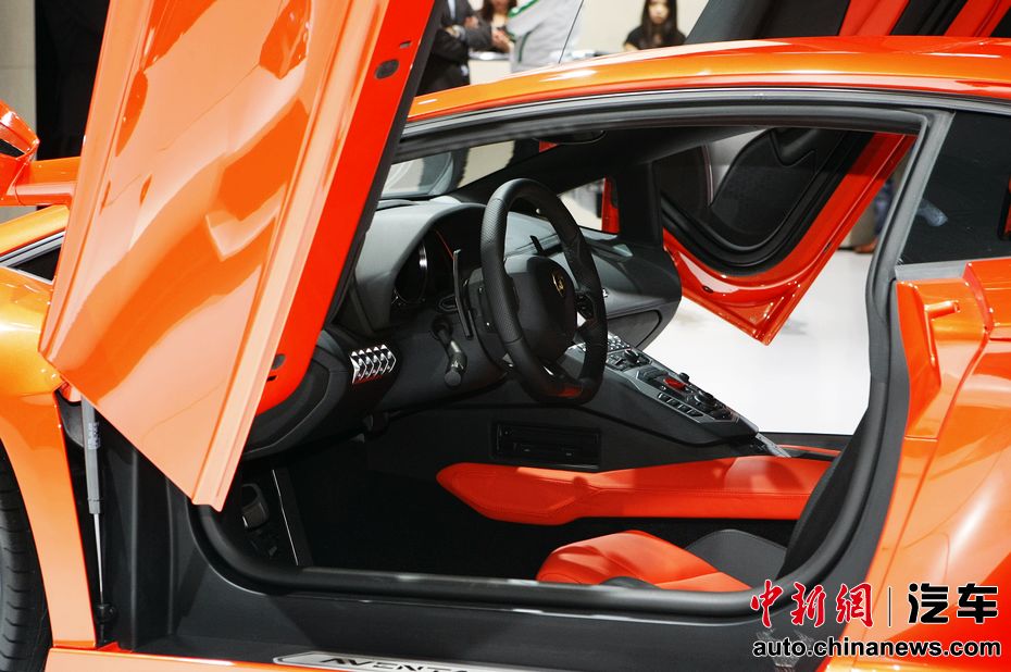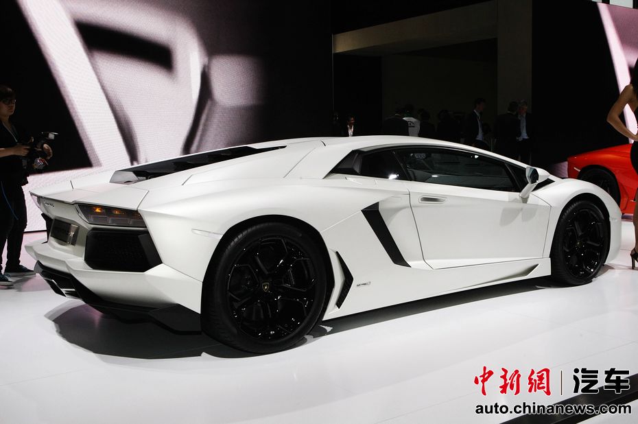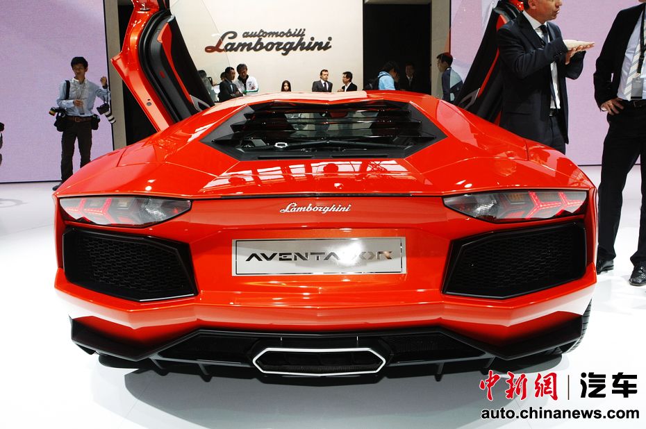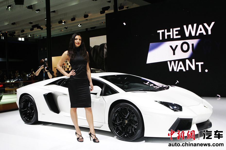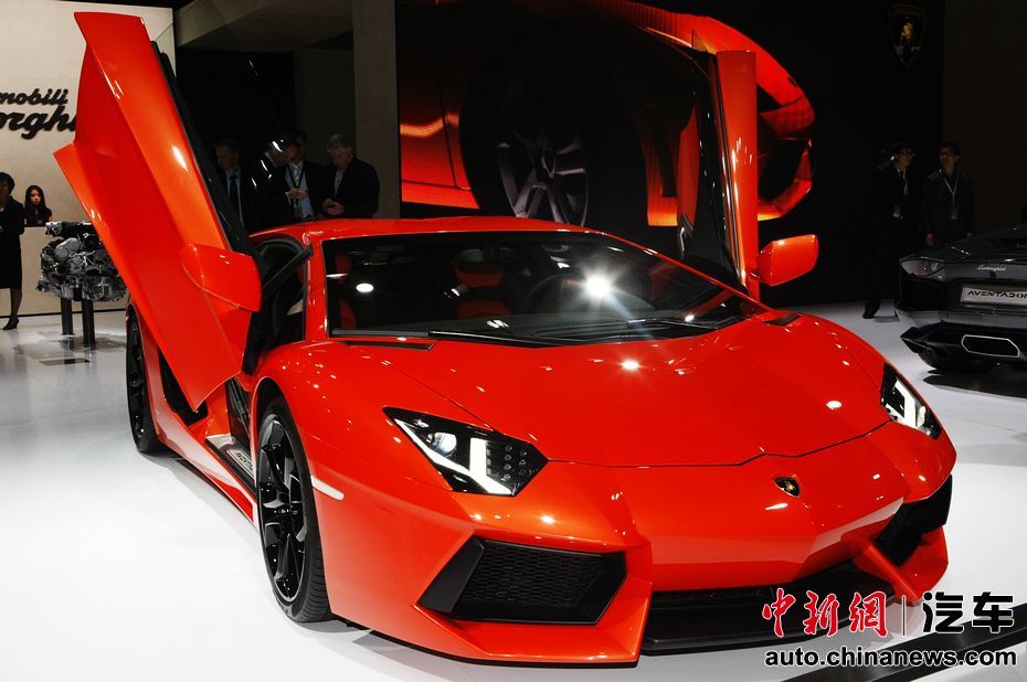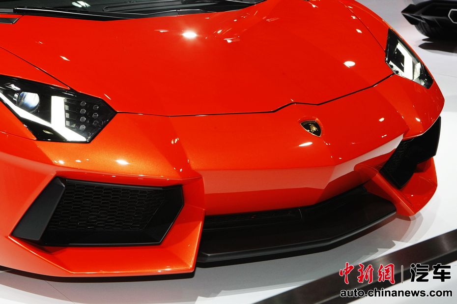 2011上海车展4月19日开幕,中新网汽车频道上海车展报道组为您带来现场报道。图为兰博基尼 Aventador。 魏巍 摄