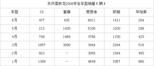 附表:东风雪铁龙2008年各车型销量明细