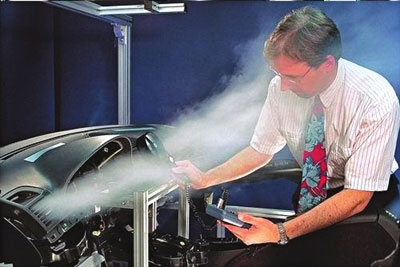 除了驾驶室内的气体检测器外,汽车气味传感器被安装在车辆前保险杠的周围。前方车辆排出的尾气,或车前方刮来的有害气体会从车头由缝隙进入驾驶室内,前保险杠周围的气味传感器便可以检测出进入的一氧化碳、二氧化氮、碳氢化合物以及挥发性有机化合物。当浓度超过基准值时,汽车空调将由外部循环切换为内部循环,同时传感器会启动系统车内排气功能,将这些有害气体尽可能快地排出车外。