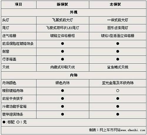 新领驭的最大改变主要体现在整车外形方面,飞翼式前大灯、飞梭式双环状LED尾灯以及镀铬立体式格栅均成为新领驭的时尚设计元素,较老款领驭的普通卤素车灯和大“嘴脸”进气格栅更加动感与前卫。