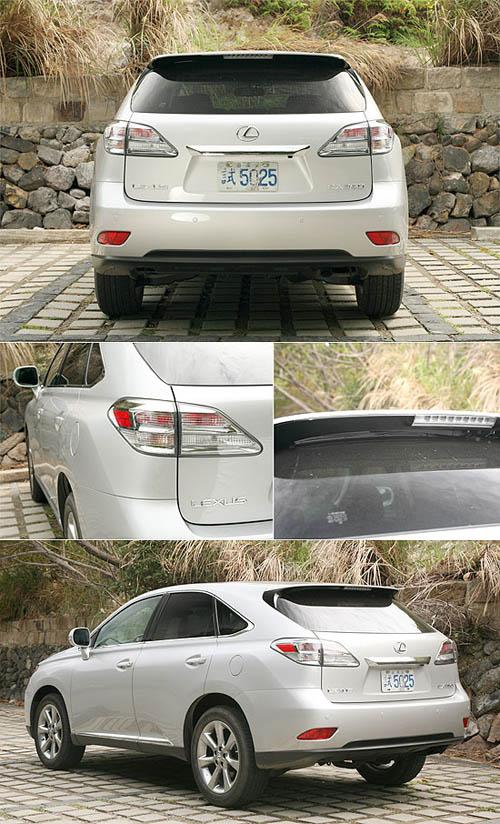 新一代RX 350菱形尾灯采用RX车系惯用的透明灯壳并增加镀铬部件,而在新一代RX 350最独特的设计,则可说是隐藏式后雨刷设计,原厂将雨刷设于后档玻璃上方,藉由尾翼巧妙遮蔽,让视觉感受显得简洁而具整体感。
