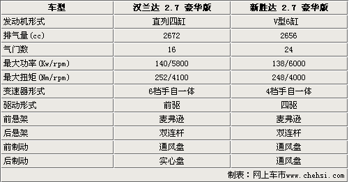 国产汉兰达和新胜达的排量均为2.7这个区间,但是在发动机形式和技术上却存在着本质区别。汉兰达的引擎为直列四缸,该发动机配备了双VVT-i技术,实现了卓越的动力输出,同时进一步提高了燃油经济性。新胜达则配备的是动力输出更加平稳的V型6缸发动机。两款车型在动力输出上,汉兰达占据了明显优势,这一点从动力输出上就可以明显看出。比较遗憾的是汉兰达2.7排量的车型都是前驱,新胜达则是全时四驱。在变速器方面汉兰达都配备的6档手自一体变速器,新途胜则是4速手自一体变速箱。制动方面两款车型都是采用的前通风盘后实心盘式的刹车。