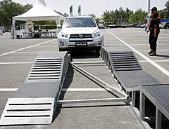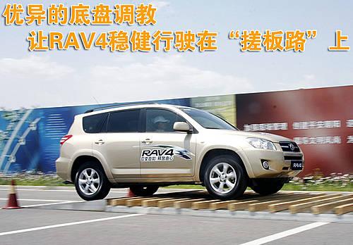 RAV4城市休闲SUV优异的底盘调教,使其行驶在模拟“搓板路”上时,车内驾乘人员感觉车两依然平稳舒适。似乎整个RAV4车身悬浮在底盘之上,之间前后悬架在上下调节从而适应路面状况。