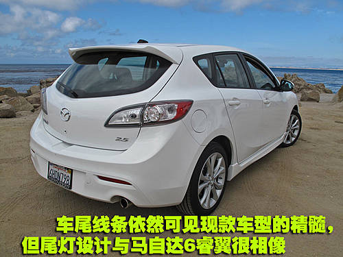 全新的马自达3两厢版虽然在外观方面与老款相比也有了很大的提升,但作为马自达家族的运动代表,这款车依然秉承了马自达3两厢一贯的运动设计风格,并且保留了老款车型流畅的线条与鲜明车顶线条以及那条强劲有力的腰线。全新的马自达3两厢采用了水平式前氙气头灯组合,保证了消费者在夜间行驶的安全性。另外,分体式尾灯、后扰流板和新式铝合金轮的配备,是这款车的运动气息更加浓郁。