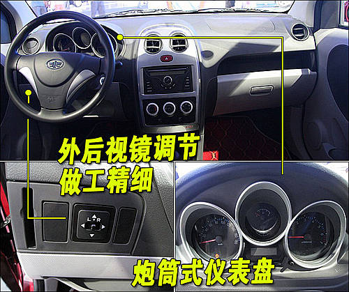 天津一汽威姿V1的仪表台使用了灰色风格的设计,炮筒式设计仪表盘,可以让驾驶元充分享受到驾驶的乐趣,方向盘右侧外后视镜控制面板做工精细。