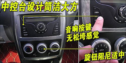 天津一汽威姿V1的中控台面板采用了硬塑材质。中控台的各按键设计大小、阻力适中,旋钮的阻尼一般,在使用中各项调节功比较准确。