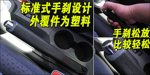 天津一汽威姿V1车型手刹依然是普通的拉杆式设计,黑色设计与内饰基调相吻合。实际操作过程中感觉行程较短、力度适中,厚实的用料使手握时感觉舒适。