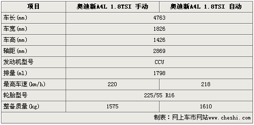 另据4S店相关人士表示,国产奥迪新A4L 1.8TSI最早将于8月份上市,但现车到店估计要到10月份左右。国产奥迪新A4L不仅加大了车身尺寸,而且通过前后50:50重量分配等改进进一步提升了整车操控与运动性,更加符合国人的个性需求。