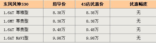 市场解析:虽然风神S30在性价比上有很强的竞争力,但产品认知度和销售服务方面还需要更多的时间来完善。笔者从上海地区唯一的东风汽车4S店了解到,风神S30的全部五款车型中除了顶配导航版外,其余车型的样车均已到达4S店展厅,而现车也已开始预订,订金为5千至1万元,提车期为1个月。