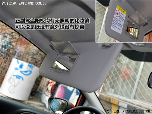 选择新嘉年华 两厢1.5手动运动型的情侣同样不需要担心女孩的补妆问题,正副驾驶座位都有遮阳板化妆镜,不过我们从中没有得到任何让人感到意外的惊喜,因为这两个化妆镜都没有自己的照明灯,仅仅算是合格的配置。