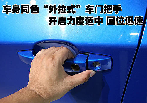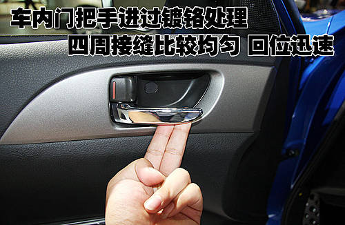 斯巴鲁翼豹四只车门拉手的颜色都与车身同色,开启车门时发现车门拉手部分做工比较细致,无任何松垮感觉。