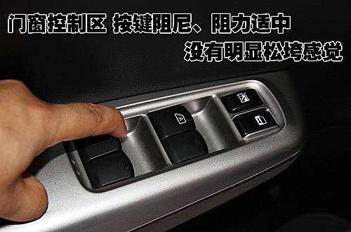 驾驶员侧车门控制区集成了门窗以及中央门锁控制键,整体做工十分细致,间隙均匀。使用时发现各按键的阻力适中,没有明显松垮的感觉。