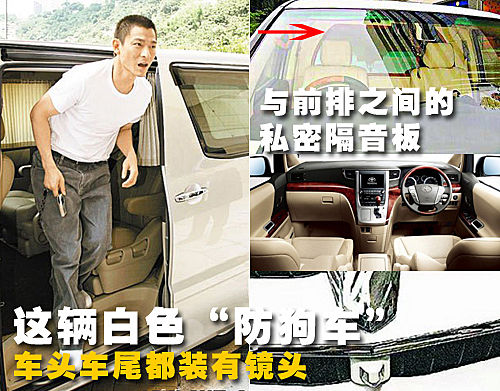 这辆特殊的丰田Alphard“绝密防狗车”内设隔音密室、闭路电视及反光玻璃等装置,这是其它同款车型所没有的配置。车头与车尾都装有镜头,可拍摄车外情况,车厢则有两部监视器可对外界监视。