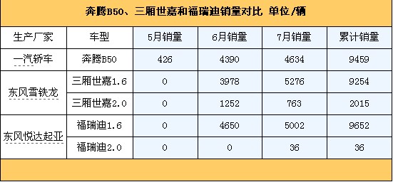 我们选择了几款上市两个月的热点车型,分别是奔腾B50、三厢世嘉和福瑞迪。我们暂且不去研究它们的性能好坏,先来看看消费者是怎么选择这几款车的。