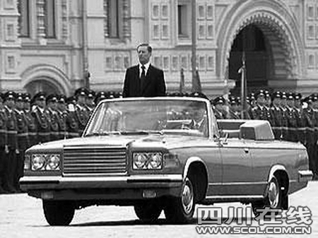 为了纪念“卫国战争”的胜利,过去的苏联和现今的俄罗斯每年5月9日都要在莫斯科红场举行盛大的阅兵式。自1981年以来,国防部长和莫斯科军区司令检阅部队时不再骑马,改乘特制的吉尔-115V高级豪华敞篷阅兵车。该车手工制造,数量极少,档次相当于德国的迈巴赫或英国的劳斯莱斯。1981年苏联利哈切夫“吉尔”汽车制造厂开始在吉尔-4104汽车基础上生产吉尔-115V专用豪华敞篷阅兵车。尽管已有25年的历史,吉尔-115V阅兵车现在仍然非常先进。它使用6.96升V8发动机,2组蓄电池,305马力。三挡自动变速、液压方向盘、电动升降玻璃、空调、电动升降遮幕、司机坐椅电动调节器、遥控后视镜、自动清洗设备等现代化设备应有尽有。