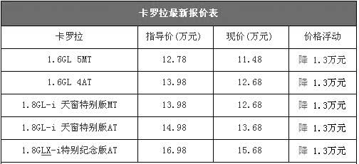 卡罗拉最低仅售11.5万