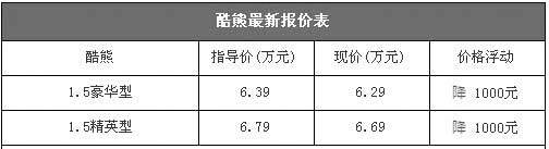 长城酷熊的外形个性,但是凭借着突出的性价比以及超大的内部空间和1.5LVVT发动机等卖点,上市后取得了非常不错的销量。不过最近几个月其销量出现了下滑的势头,8月份仅售出1000辆。编辑昨日从北京地区的一些长城汽车授权经销商处了解到,近期酷熊的价格非常稳定,全系车型仅能优惠1000元,购车后可赠送部分装饰品。以下是长城酷熊最新报价表: