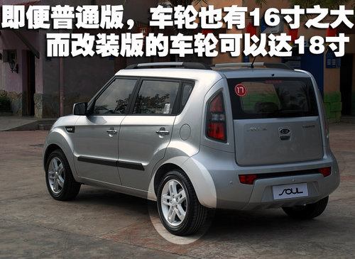 您是否看到过任何一款A0级的小车使用到了16寸的轮胎轮毂?答案当然是没有的,目前大部分同级别同价位车型最多也就是使用到了15寸而大部分还是停留在14寸而已。东风悦达起亚SOUL的大尺寸轮胎轮毂个性鲜明,提升了整车的档次感,也让这款车型更加具备了一款CROSS OVER车型的感觉。
