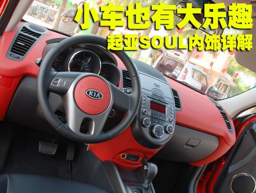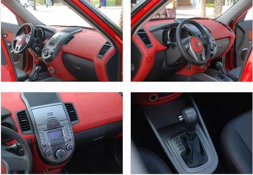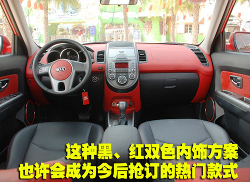 在方向盘也就是驾驶者的周围分布着很多按钮,不过别担心,再生疏的驾驶者也不会因为这些按钮或是功能而手忙脚乱,因为设计师早已经为您的日常使用考虑的很周到了。位于仪表台左侧的三炮筒式仪表盘设计还算时尚,但是仪表盘的功能并没有太多新鲜元素的注入,这一点也是因为成本的考虑而不得不落入俗套。中控台左侧下方是控制大灯高度的调节按钮,右侧的控制钮是SOUL的最大特点,即控制前车门扬声器发光的开关,它可以跟随音乐节奏变换红色灯光的闪烁,如同将迪厅的灯光带入了车内。