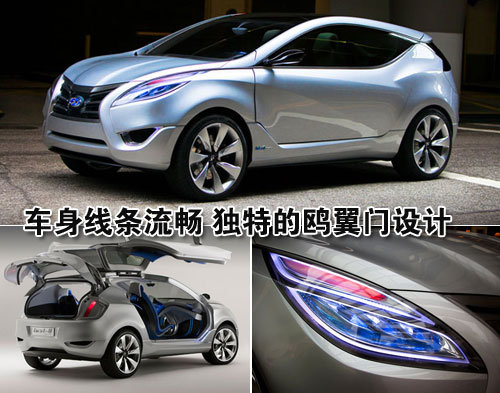 现代概念车Nuvis(HCD-11)由美国加州设计室完成,它融合了轿跑车与SUV的设计元素,车身线条以及大灯设计线条非常流畅,车门采用了独特的鸥翼式设计,前脸的进气格栅造型形成X形的格格局,中网上现代的标志可以被点亮,透出蓝色灯光,预示着这也是一款环保车型。尾部圆润,充满动感,顶部线条与跑车类似。