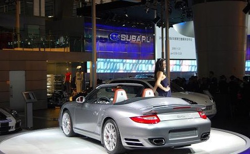 做为911的顶级车型,11月23日举行亚洲首发的保时捷911 Turbo Cabriolet成为展台上最耀眼的明星。这款车型继承了传奇跑车系列所具备的非凡性能和精巧设计。这款第七代911 Turbo的核心亮点是其排量为3.8升、最大输出功率达500 bhp的全新动力单元。在保时捷911 Turbo 35年的辉煌历史当中,这也是第一款全新搭载了直接燃油喷射以及带有可变几何涡轮保时捷专用涡轮增压器的发动机。另外,全新六缸双涡轮增压水平对置发动机也是第一次与七速保时捷双离合器变速箱(PDK)配合使用。