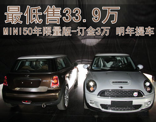 据北京经销店销售人员介绍,MINI50周年分为Mayfair和Camden两款车型,售价分别我饿哦33.9万元和37.9万元。目前店内已经可以接受MINI50周年纪念版车型的预订,订金为3万元,最早一批现车将会在明年的2月份交到消费者的手里。
