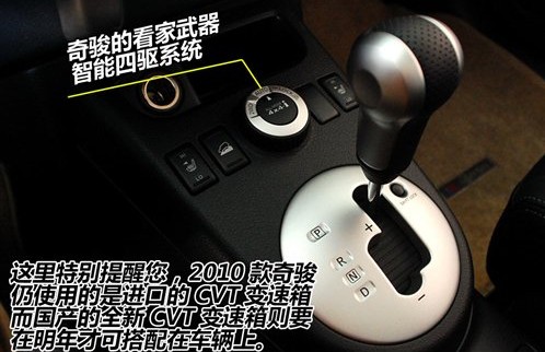 相比逍客,2010款奇骏的变化更实用一些,特别是增加了一款配置最高的2.5L四驱至尊版车型,厂家指导价为26.98万元,外观上和其他车型的区别就是增加前后的越野包围,而在配置上则有DVD导航、侧面摄像头等。