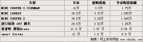 而针对市面上常见的一些符合1.6升以下排量购置税优惠政策的车型,我们也进行了一些试算。比如购买一台进口MINI轿车,该车的排量在1.6升价位为40万元左右。如果您在2009年12月31日以后购买该车,那么仅购置税部分就要多负担25%也就是8750元左右。但是对于一台0.8升排量售价在3万元左右的奇瑞QQ来说,2009年12月31日以前购买或是2010年1月1日购买的购置税金额差别仅为650元。所以是否赶在2009年12月31日以前购买1.6升以下排量轿车,还是应该根据您个人的实际需求,以及购买车型的价位而定。