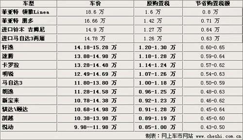 二.售价20万元以下热销车型 09年购置税优惠金额