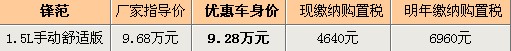 编辑点评:从上一代外型备受争议的思迪到如今外型刚劲的锋范,CITY成功完成了由柔到刚的转变。一改之前大家对家用经济型轿车的认知,厂家设计师通过事实证明了家用经济型轿车也可以如此具有运动风格。新的面孔自然深得大家关注,而这一次几乎绝大部分人都对它产生了好感。其中1.5L作为经济排量因此得到了保留,较低价格更是让它在如今较乱的市场上表现的游刃有余。为迎合购置税优惠幅度即将缩减的消息,商家打出了优惠4000元的价格,以此在年末期待更好的市场表现。