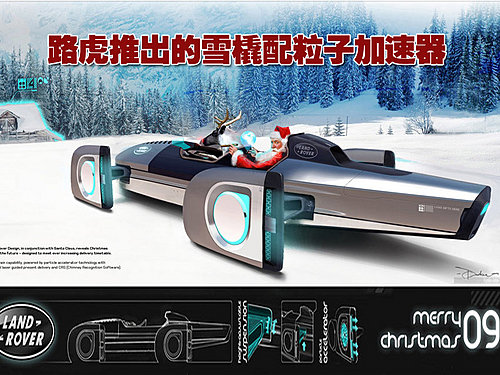 首先介绍的这款是路虎汽车推出的最富有现代感的雪橇,这款新型雪橇是由粒子加速器推动的一款机器,因此它拥有较快的速度,可以满足越来越多的儿童能够在第一时间内得到圣诞老人送来的礼物。此外这款新型雪橇还配置了激光制导的分发系统以及烟囱识别软件,这样就可以保证圣诞老人迅速准确得将圣诞礼物送达。