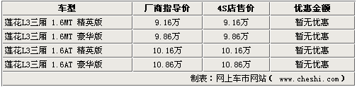 青年莲花4S店销售人员表示,现在到店的莲花L3车型颜色不是很全,但是很快将充足货源,届时将可满足消费者的购车需要。现阶段各家店内的三厢莲花L3新车均维持厂商指导价,暂时没有任何现金优惠,如需预订店内没有的颜色,则要提前预订并等待半个月左右即可提车。