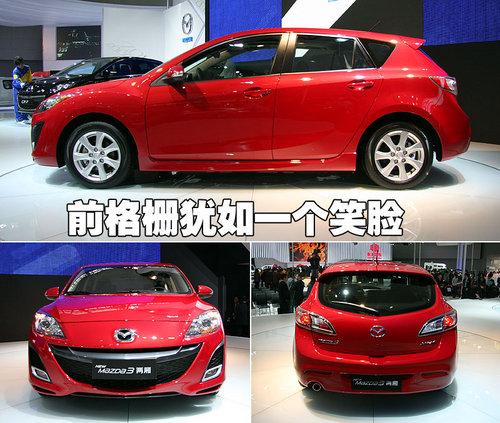 这款即将引入国内的全新两厢马自达3的前脸设计,与第二代马自达6极为相似。宽大的前进气格栅边缘微微上翘,犹如一个大大的笑脸。另外,这款车的前雾灯也经过了重新设计,显得非常运动。