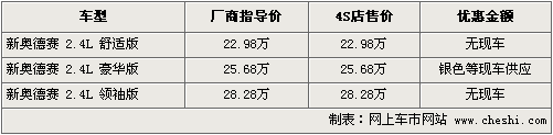 据广汽本田4S店销售人员介绍,新奥德赛订单一直在持续增加,现无任何优惠。店内现有2.4L豪华版部分现车供应,其它车型颜色并不齐全需要预定,预定订金为1000元,1月初左右就可以提到车。如需了解购车详情,请咨询当地经销商处。北京地区各4S店由于订单不同,各店销售的现车颜色有所不同。