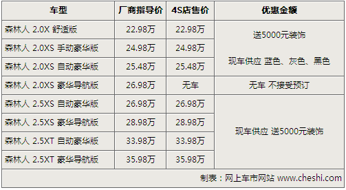 相比11月初的加价销售,目前购买斯巴鲁森林人店内可赠送价值5000元的装饰,其中包括了倒车雷达,尾喉,脚垫,2年道路救援卡等等,而在价格方面没有优惠幅度。现车方面,2.0豪华版,2.5豪华版有蓝色、灰色、黑色、银色等现车供应,可供挑选的空间还是很大的。