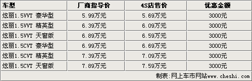 据长城汽车4S店销售人员介绍,炫丽1.5L在元旦前可以优惠3000元,并赠送3000元的礼包。但元旦之后,炫丽的优惠幅度有所减少,目前购买1.5L车型只能优惠3000元现金。另外,炫丽天窗版一直都没有现车销售,预订需要等1个月左右。