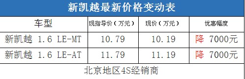 自2010年1月4日起,对别克凯越车型系列进行优化精简,在售车型仅保留1.6LE AT(自动舒适版)和1.6LE MT(手动舒适版)两款,同时市场售价调整为11.79万元和10.79万元,媒体纷纷猜测这种官方降价是在为英朗腾出价格空间。编辑从北京地区通用别克4S经销商处了解到,目前凯越两款车型均有银色现车在售,购车可以优惠7000元现金。据经销商透露,消费者要想以这个价格提车,需要在店内做一条龙服务,其中车辆四项基本保险可以打9折。以下是凯越最新价格变化表: